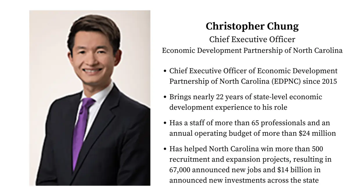 Recently, Golden LEAF President, Chief Executive Officer Scott T. Hamilton sat down with Chris Chung, the Chief Executive Officer of the Economic Development Partnership of